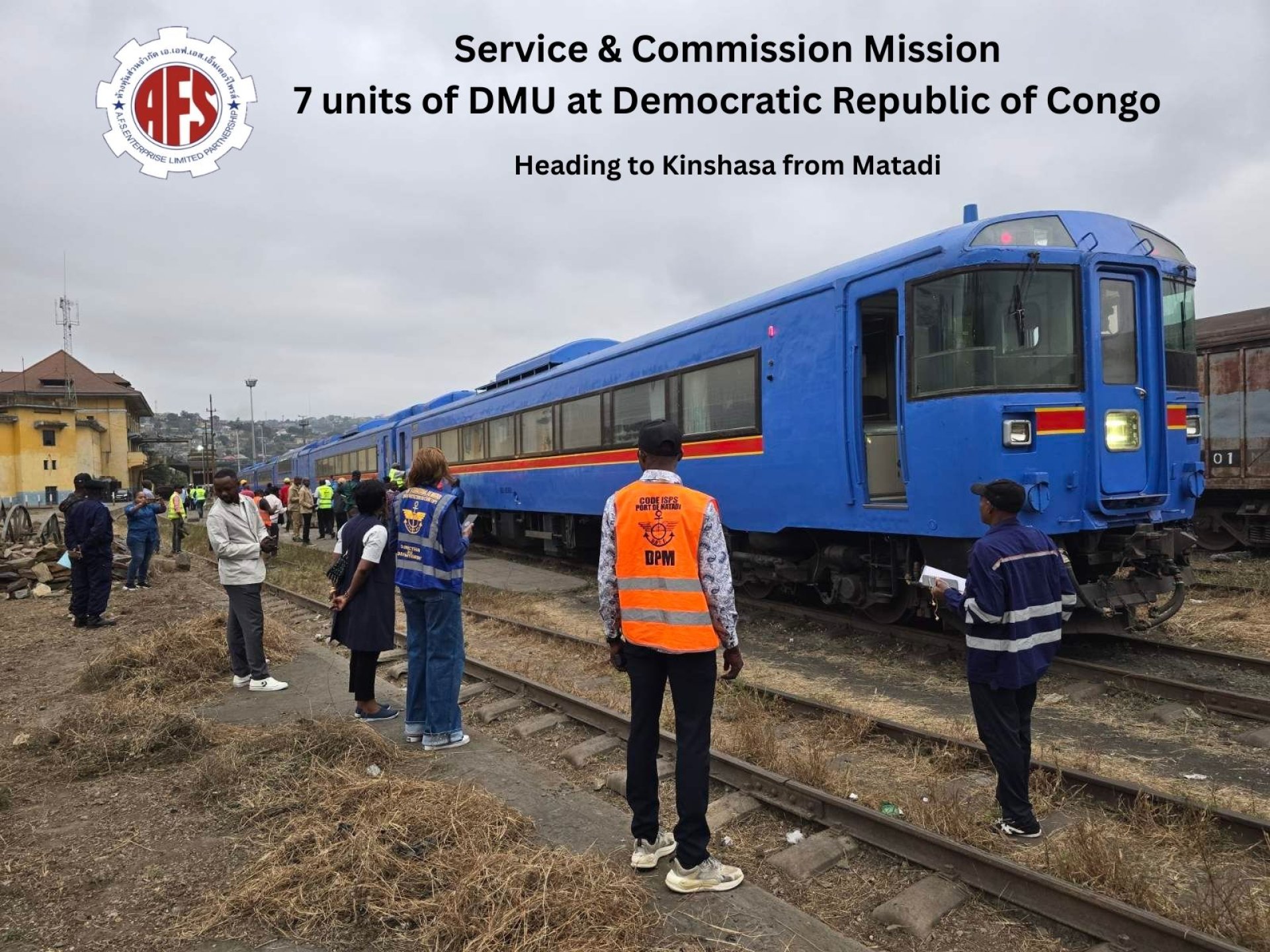 Service and Commission of 7 Units of Used Japanese DMU, including KIHA-183, KIHA-182, and KIRO 182 Series, at Matadi Railway Station before moving to Kinshasa Railway Station in Democratic Republic of Congo, Africa, for 30 days.